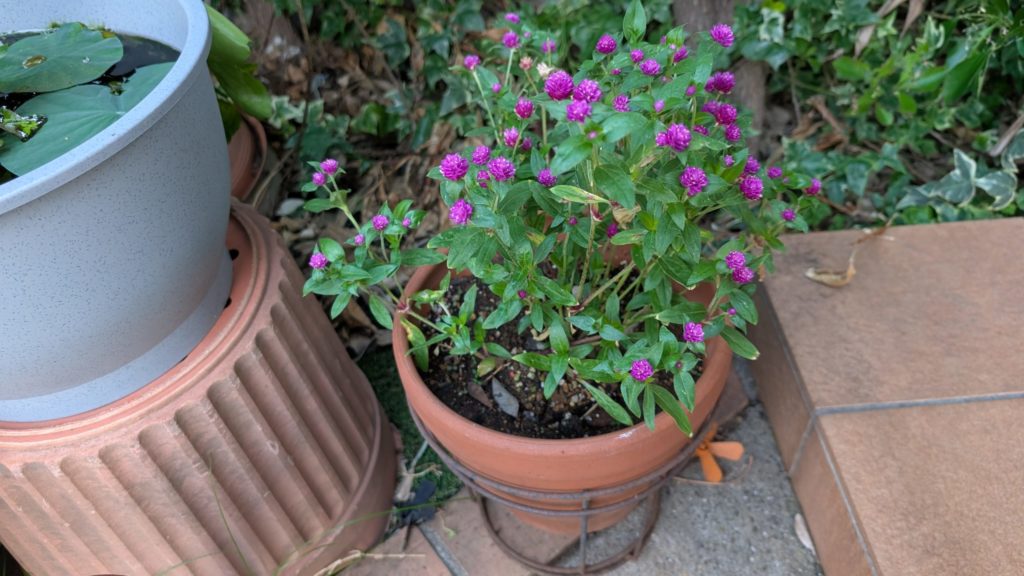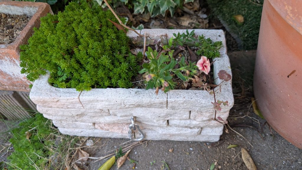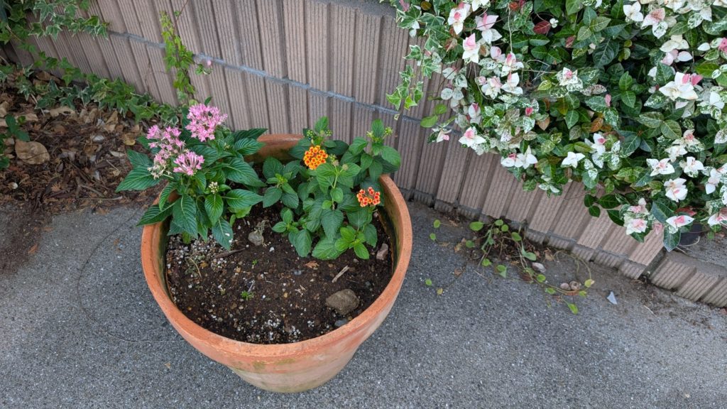 この後購入した花を植えてみました。段々と暑く成り置き場所に悩みましたが何とか定位置を決めて毎晩水撒きでです!