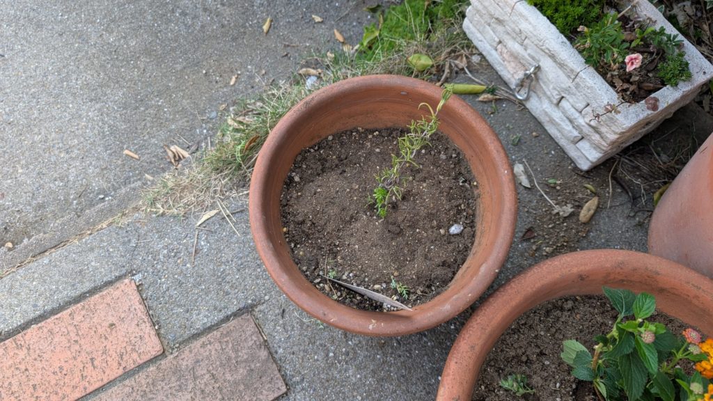 ラベンダーは挿し木の2本が木の1/2くらいから下が枯れているのが心配ですが、現在4ヵ所で育てていて一応順調と言えると思います。(前回)